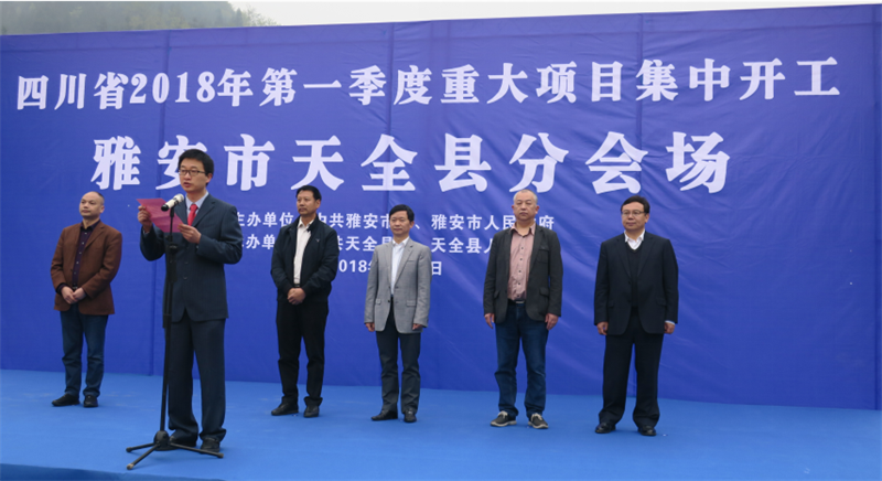 2018年3月30日上午,在交建集團(tuán)丹石建材公司施工現(xiàn)場(chǎng)舉行了四川省2018年第一季度重大項(xiàng)目天全縣分會(huì)場(chǎng)集中開(kāi)工儀式。交建集團(tuán)黨委書(shū)記、董事長(zhǎng)漆家華出席開(kāi)工儀式。