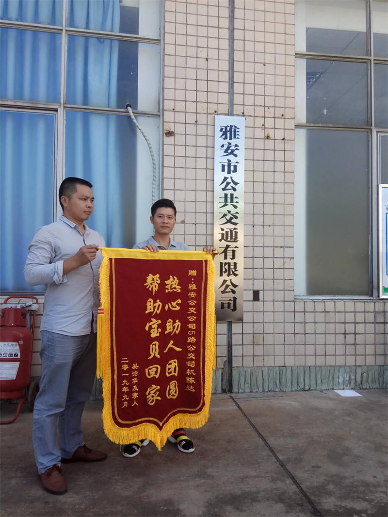 正是由于陳達細致耐心的服務和面對突發(fā)事件的沉穩(wěn)冷靜,避免了該起兒童走失事件發(fā)展成更大的悲劇,挽救 了一個家庭。9月20日,為了表達感激之情,男童的父親吳治華來到公交公司將一面寫有“熱心助人團圓,幫助寶貝回家”的錦旗送到了陳達手上。