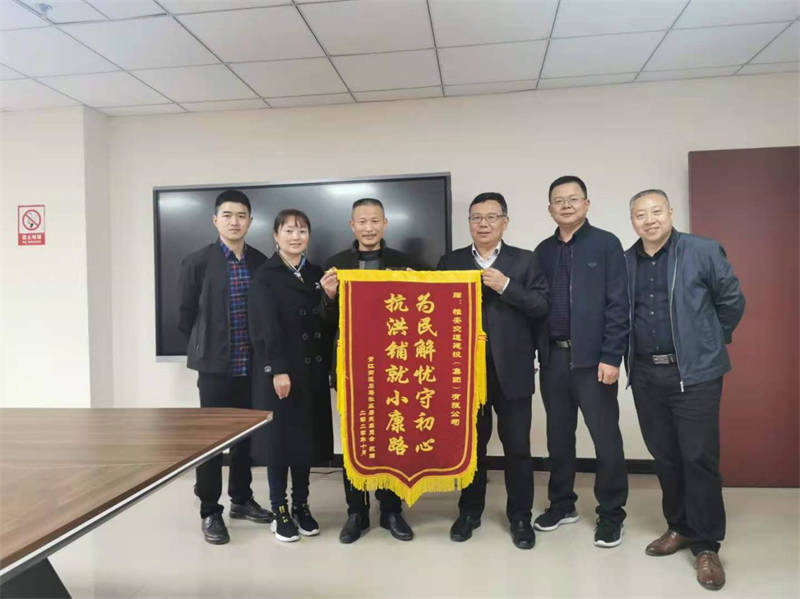 11月10日,雨城區(qū)青江街道石馬社區(qū)黨委書記楊述全、主任張世霞專程來到雅安交建集團(tuán),代表石馬社區(qū)群眾將寫有“為民解憂守初心·抗洪鋪就小康路”的錦旗贈送到交建集團(tuán)黨委書記、董事長漆家華手中,為在今年8月抗洪搶險救災(zāi)中交建集團(tuán)對石馬社區(qū)給予的支持和幫助表示感謝。