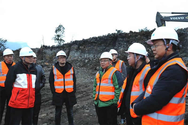 隨后,檢查組乘車(chē)前往天全魚(yú)泉鄉(xiāng)丹石礦山首采平臺(tái)。丹石公司負(fù)責(zé)人匯報(bào),礦山存儲(chǔ)量可供開(kāi)采十余年,目前已經(jīng)初步解決棄土矛盾,基本可以實(shí)現(xiàn)量產(chǎn)。聽(tīng)完現(xiàn)場(chǎng)匯報(bào),大家切實(shí)感受到礦山開(kāi)采工作的艱辛,又為集團(tuán)豐富的“家底”而信心倍增。