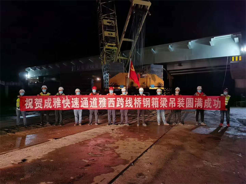 4月24日凌晨,第4片鋼箱梁由大型履帶吊緩緩提升就位,標(biāo)志著成雅快速通道(雅安段)新建項目三標(biāo)段雅西跨線橋工鋼箱梁吊裝工作順利完成,為如期通車創(chuàng)造了保障性條件。