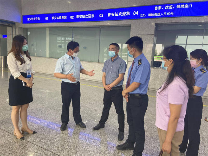 6月8日下午,市政府副秘書長(zhǎng)陳武到雅安火車站檢查指導(dǎo)常態(tài)化疫情防控工作。市交通運(yùn)輸局副局長(zhǎng)龍興、市級(jí)相關(guān)部門及運(yùn)通公司負(fù)責(zé)人陪同檢查。