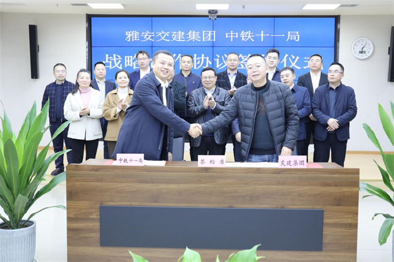 11月2日,雅安交建集團(tuán)與中鐵十一局集團(tuán)有限公司簽署戰(zhàn)略合作協(xié)議。集團(tuán)黨委書記、董事長(zhǎng)漆家華,中鐵十一局集團(tuán)公司四川區(qū)域總經(jīng)理呂 涵參加并見證簽約儀式,集團(tuán)黨委副書記、總經(jīng)理羅倫全與中鐵十一局集團(tuán)四川區(qū)域副總經(jīng)理吳江偉代表雙方簽約。集團(tuán)領(lǐng)導(dǎo)張萬清、張勝利、丁春、陸鷗、程學(xué)強(qiáng),中鐵十一局四川區(qū)域副總經(jīng)理田景發(fā)以及四公司、五公司相關(guān)負(fù)責(zé)人見證簽約和座談交流。