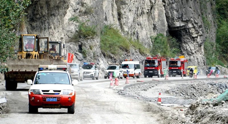 此次演練模擬地震造成山體垮塌、引發(fā)泥石流,造成交通道路中斷,急需搶通“生命通道”,交建路橋公司積極搶險(xiǎn)救援力量參與現(xiàn)場救援、打通“生命通道”、道路保通保暢等任務(wù)。
