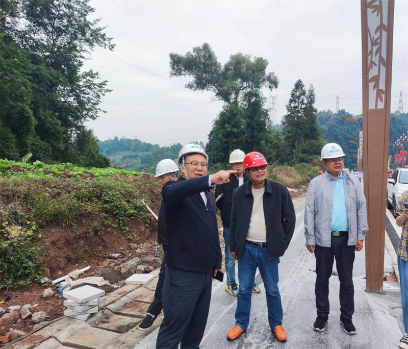 漆家華一行首先來到雨名快速通道項目成雅高速跨線橋施工現(xiàn)場,詳細詢問了解工程建設(shè)進度、安全生產(chǎn)管理制度落實和施工人員安全防護等情況。要求在建項目參建各方務(wù)必始終繃緊安全這根弦,加強安全監(jiān)管,落實全流程安全責任,規(guī)范施工作業(yè),確保項目建設(shè)施工安全,守牢安全生產(chǎn)底線,不斷提升安全水平。