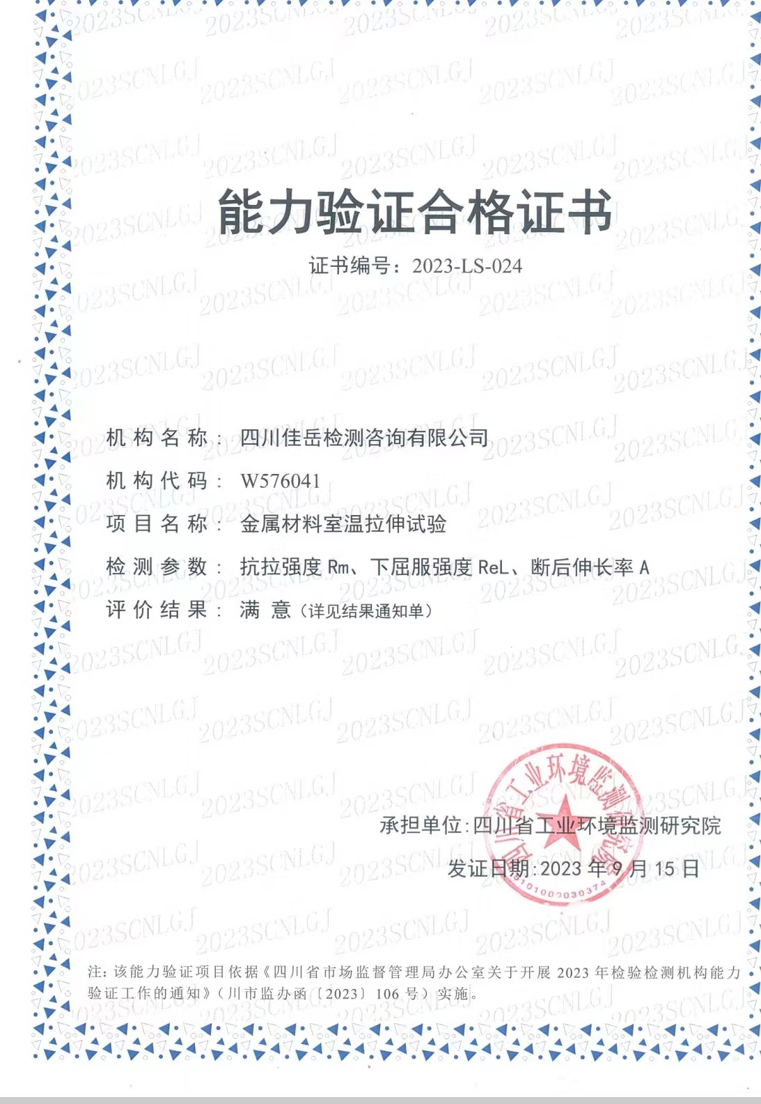 近日,四川省市場監(jiān)督管理局公布2023年能力驗(yàn)證結(jié)果,雅安交建集團(tuán)所屬四川佳岳檢測咨詢公司參加的保溫材料導(dǎo)熱系數(shù)檢測、室內(nèi)環(huán)境污染物甲醛檢測、水泥物理性能檢測、金屬材料室溫拉伸試驗(yàn)等5項(xiàng)能力驗(yàn)證,評價(jià)結(jié)果均為“滿意”。