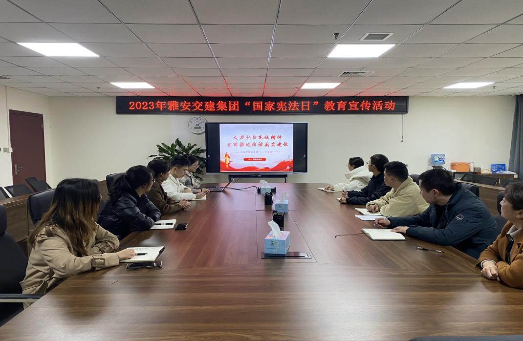 今天是我國第十個國家憲法日。為深入學(xué)習(xí)貫徹黨的二十大精神、習(xí)近平法治思想、習(xí)近平總書記關(guān)于憲法的重要論述,12月4日,雅安交建集團(tuán)組織員工開展以“大力弘揚憲法精神,全面推進(jìn)法治國企建設(shè)”為主題的“國家憲法日”宣傳教育活動,推動“憲法宣傳周”法治教育宣傳活動落地落實。