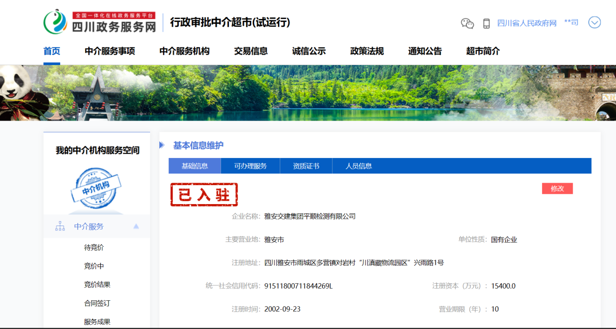 為進(jìn)一步深化“放管服”便民服務(wù),加強行政審批中介服務(wù)事項管理,規(guī)范中介服務(wù)行為,經(jīng)雅安市雨城區(qū)運管所資格審核通過,近日,雅安交建集團(tuán)平順檢測有限公司正式入駐四川政務(wù)服務(wù)網(wǎng)行政審批中介超市。