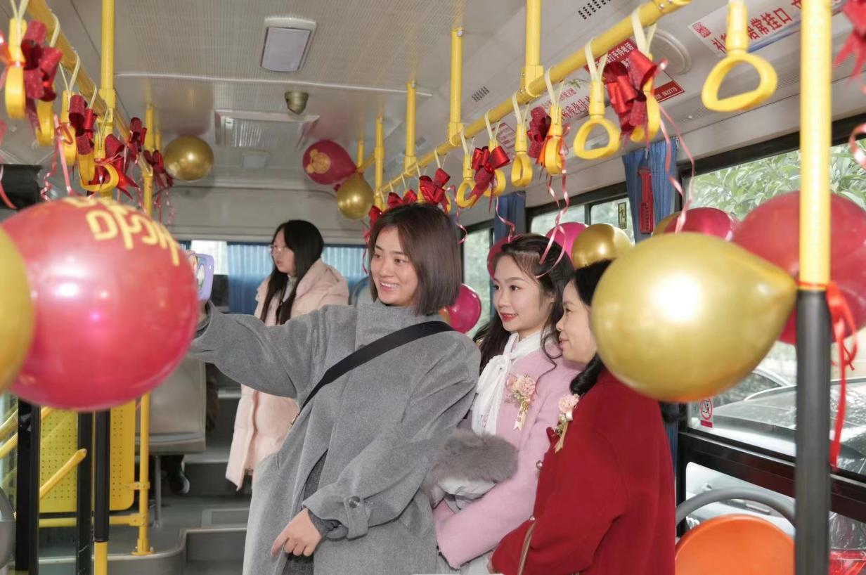 使用這輛“公交婚車”的新人表示:“與傳統(tǒng)迎親的車隊相比,公交婚車不僅低碳環(huán)保,好看熱鬧,而且租金也相對較低,性價比直接拉滿,親朋好友都聚集在寬敞的公交車里,一路拍照、唱歌,特別有儀式感”。