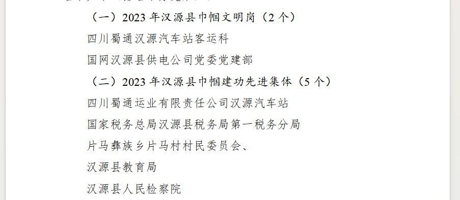 在“三八”國際婦女節(jié)來臨之際,雅安交建集團蜀通漢源汽車站被漢源縣婦聯(lián)評為“2023年漢源縣巾幗建工先進集體”、“2023年漢源縣巾幗文明崗”。