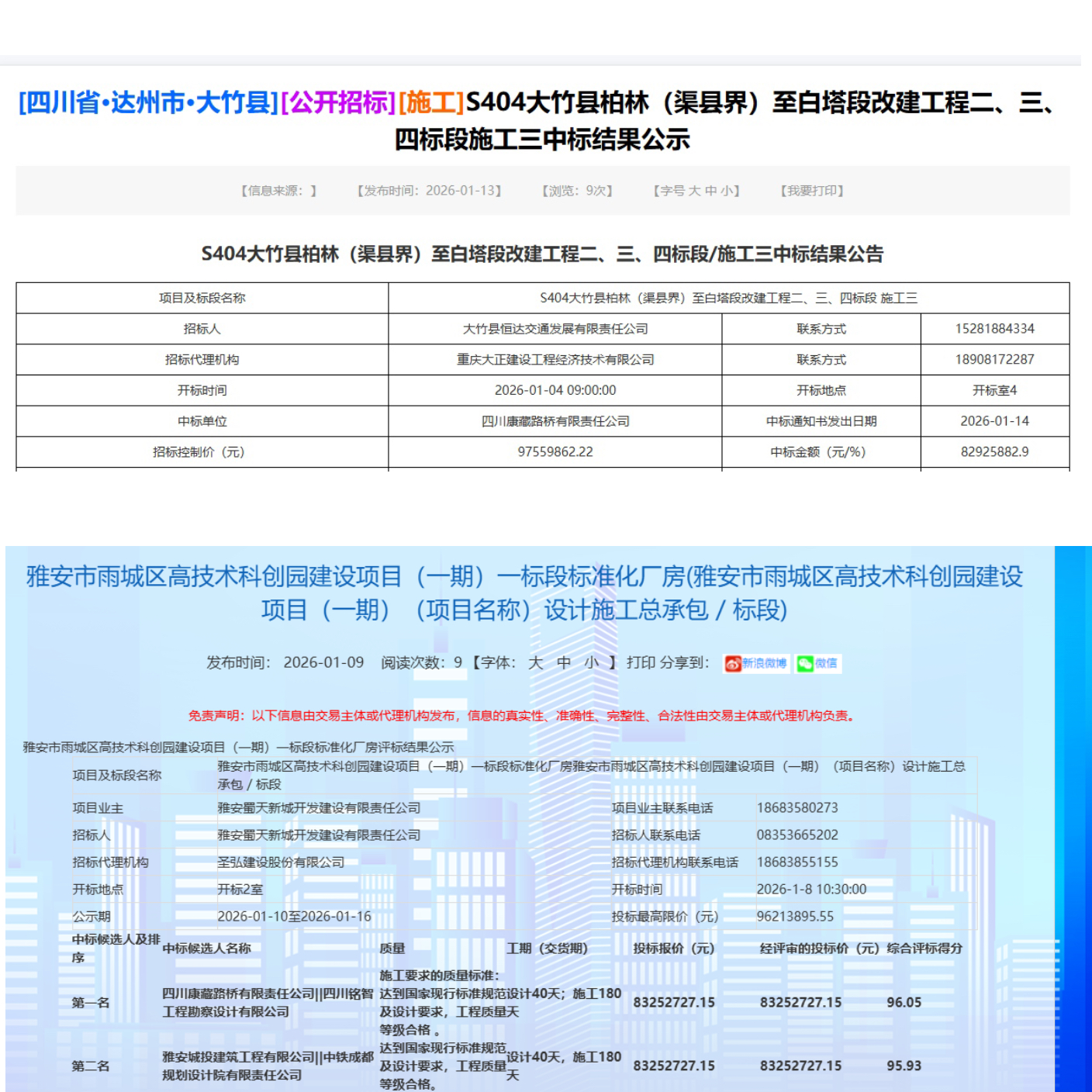 近日,四川康藏路橋有限責任公司在市場開拓方面取得重要進展,成功中標S404大竹縣柏林(渠縣界)至白塔段改建工程二、三、四標段施工項目,以及雅安市雨城區(qū)高技術科創(chuàng)園建設項目(一期),兩項目中標金額合計超過1.66億元,實現(xiàn)新年經(jīng)營工作“開門紅”。