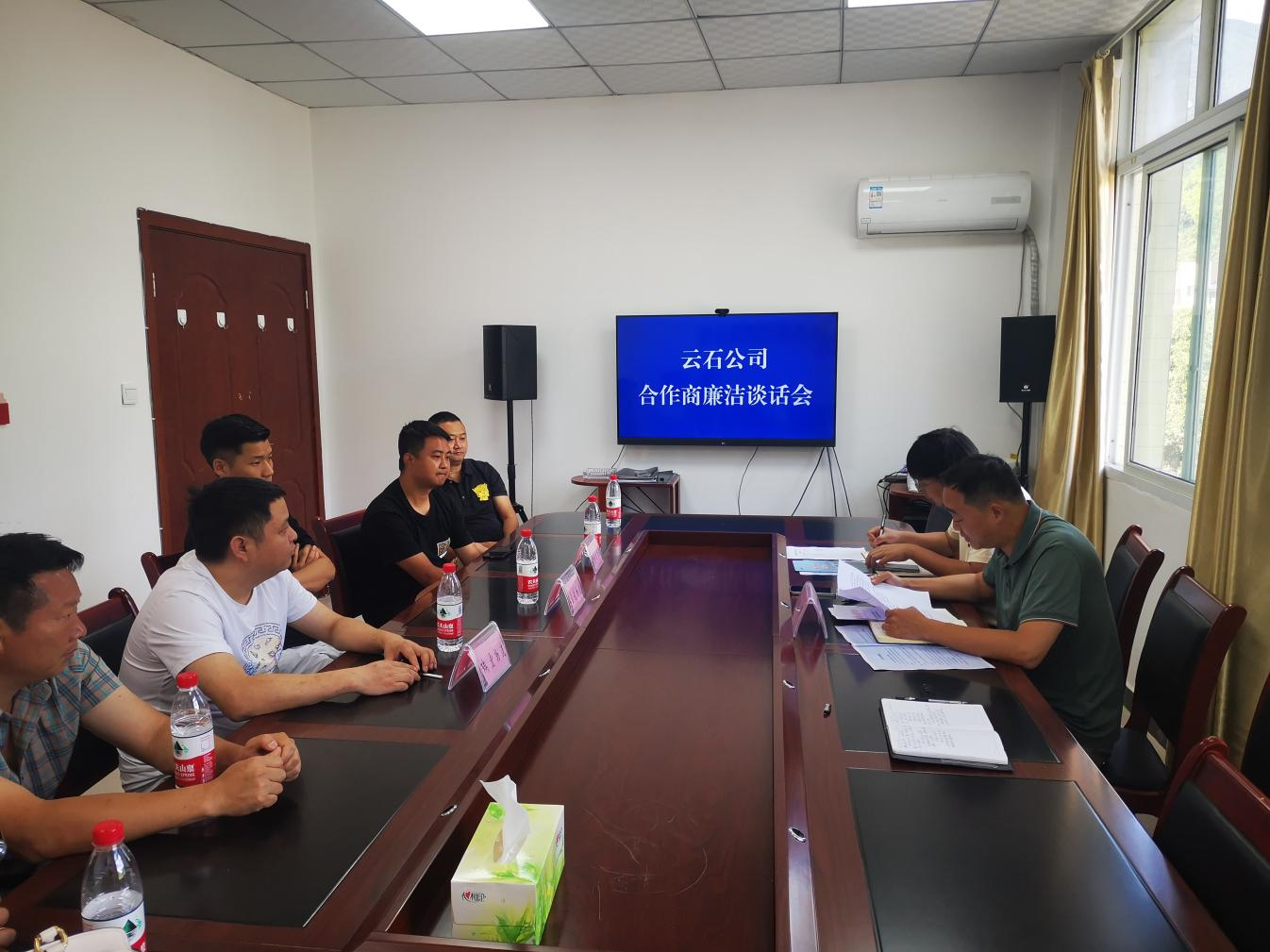 為營(yíng)造風(fēng)清氣正、崇尚廉潔的合作氛圍,7月1日上午,云石公司總經(jīng)理趙強(qiáng)主持召開(kāi)合作商廉潔座談會(huì)。公司班子成員、業(yè)務(wù)部門(mén)負(fù)責(zé)人、紀(jì)檢聯(lián)絡(luò)員以及新采購(gòu)的3家合作商代表參加座談。