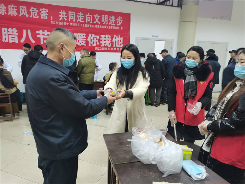 1月20日,農(nóng)歷臘月初八,雨城區(qū)青江街道石馬社區(qū)的工作人員為正在這里接受義診服務(wù)的公交車駕駛員送上熱氣騰騰的臘八粥。
