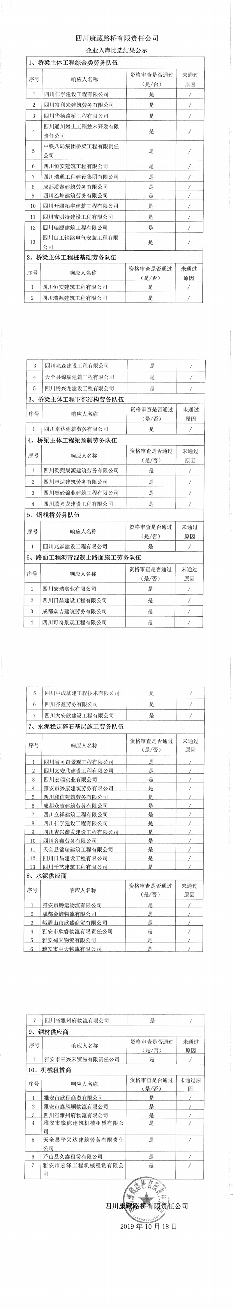 四川康藏路橋有限責(zé)任公司企業(yè)入庫比選結(jié)果公示