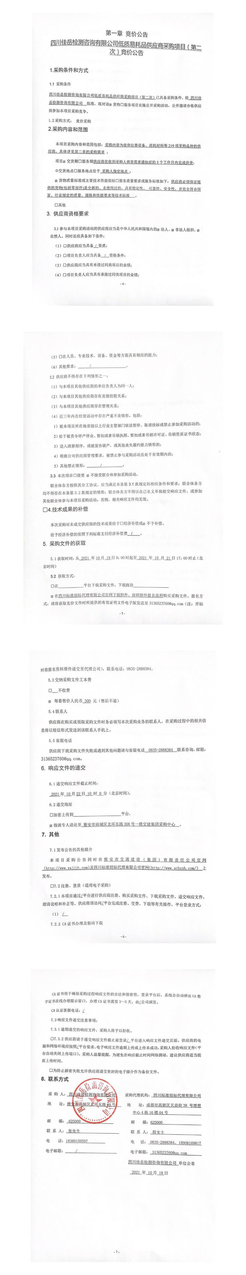 四川佳岳檢測(cè)咨詢有限公司低質(zhì)易耗品供應(yīng)商采購(gòu)項(xiàng)目(第二次)競(jìng)價(jià)公告