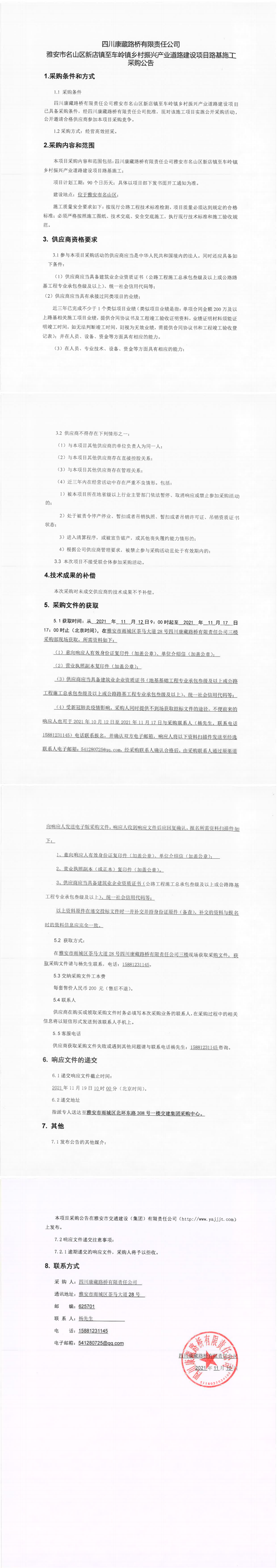 四川康藏路橋有限責任公司雅安市名山區(qū)新店鎮(zhèn)至車嶺鎮(zhèn)鄉(xiāng)村振興產(chǎn)業(yè)道路建設(shè)項目路基施工采購公告