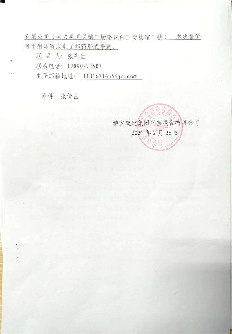 雅安交建集團(tuán)興寶投資有限公司寶興縣大漁溪河道疏浚項(xiàng)目市場調(diào)查詢價公告