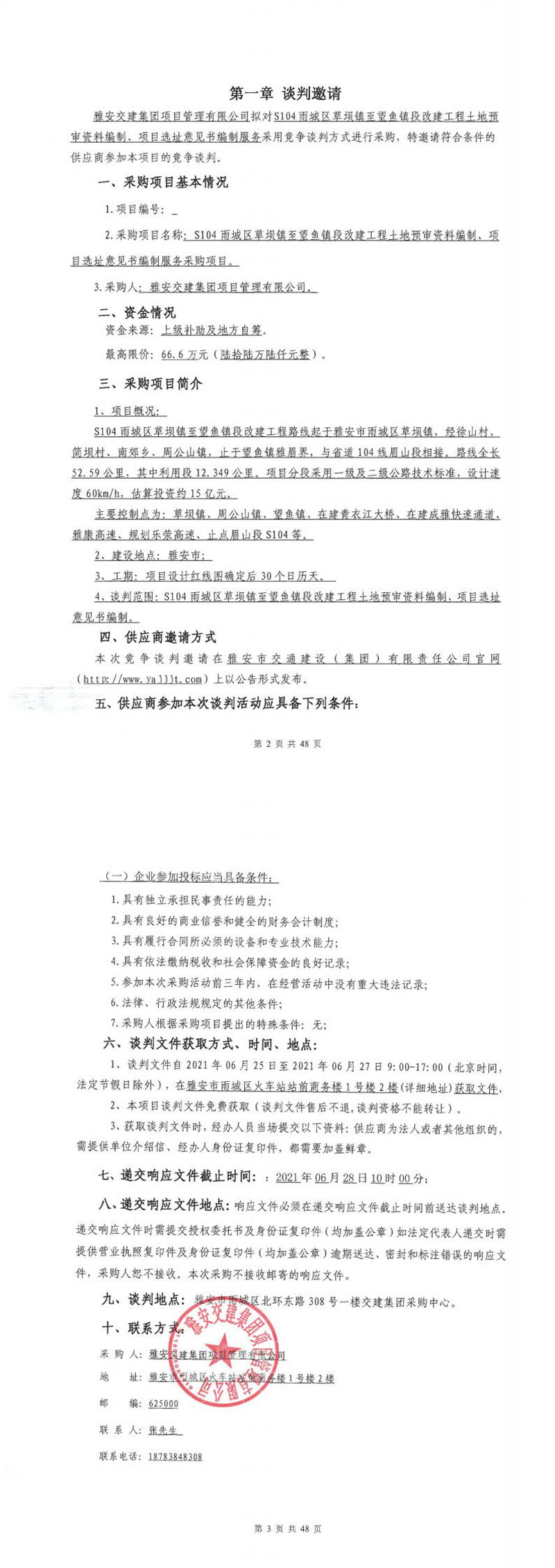 雅安交建集團項目管理有限公司S104雨城區(qū)草壩鎮(zhèn)至望魚鎮(zhèn)段改建工程土地預審資料編制、項目選址意見書編制服務采購項目
