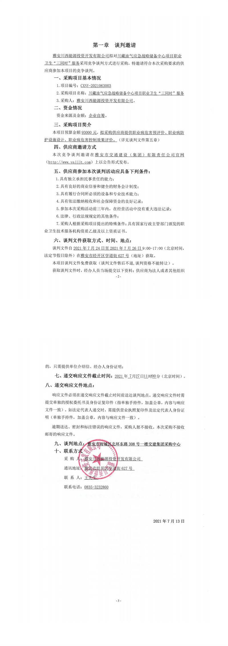 雅安川西能源投資開(kāi)發(fā)有限公司川藏油氣應(yīng)急戰(zhàn)略?xún)?chǔ)備中心項(xiàng)目職業(yè)衛(wèi)生“三同時(shí)”服務(wù)競(jìng)爭(zhēng)談判公告