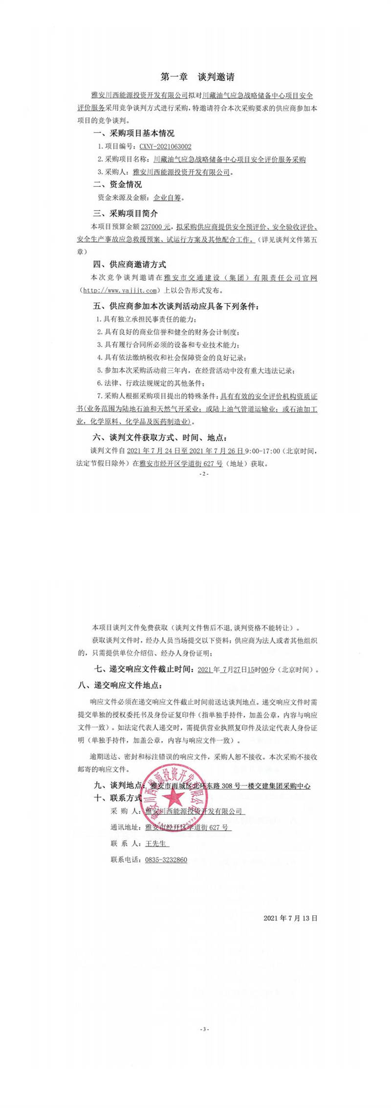雅安川西能源投資開發(fā)有限公司川藏油氣應(yīng)急戰(zhàn)略儲備中心項目安全評價服務(wù)采購競爭談判公告