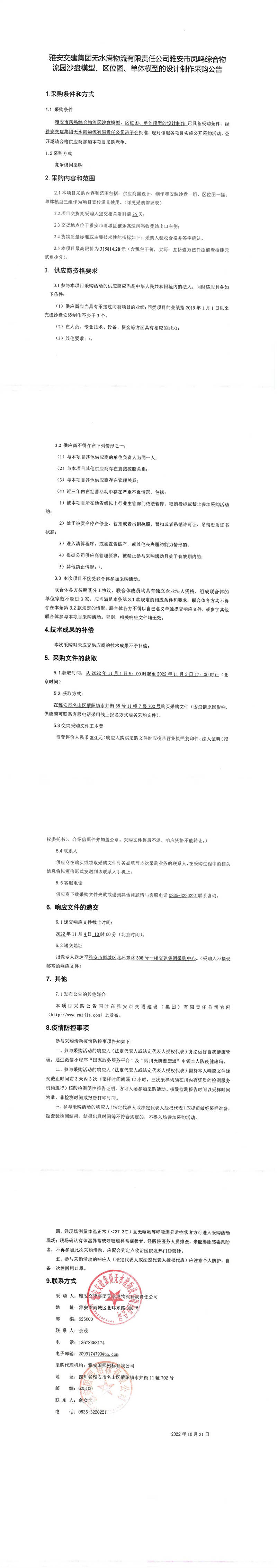 雅安交建集團(tuán)無水港物流有限責(zé)任公司雅安市鳳鳴綜合物流園沙盤模型、區(qū)位圖、單體模型的設(shè)計制作采購公告