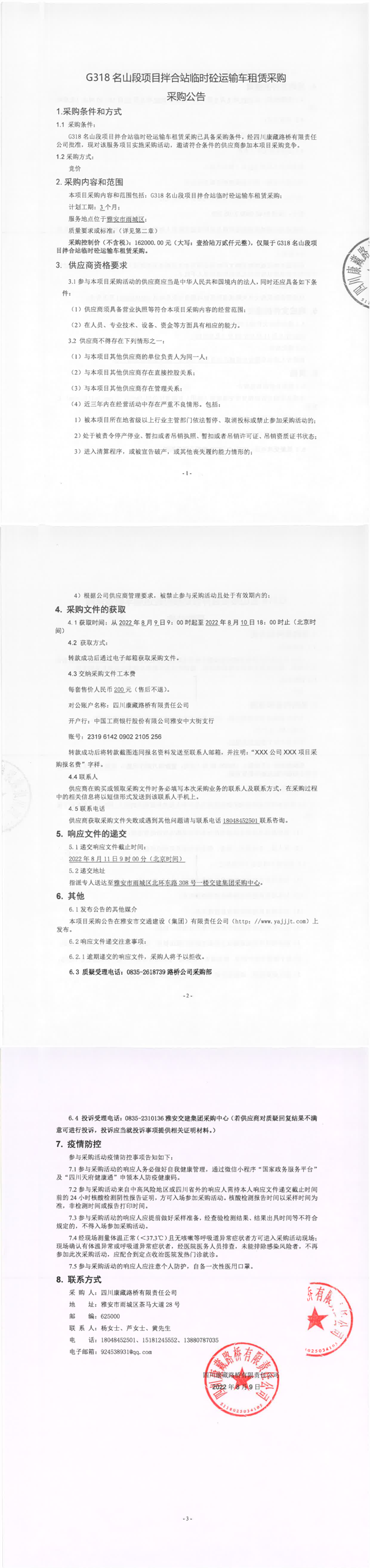 四川康藏路橋有限責(zé)任公司G318名山段項(xiàng)目拌合站臨時(shí)砼運(yùn)輸車租賃采購采購公告