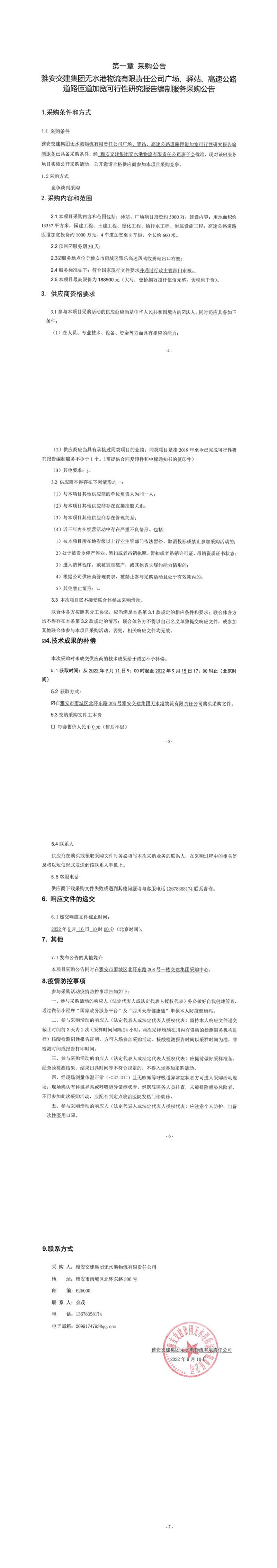 雅安交建集團無水港物流有限責任公司廣場、驛站、高速公路道路匝道加寬安全預評價、安全設施設計、環(huán)境影響評價、水土保持方案編制服務采購公告