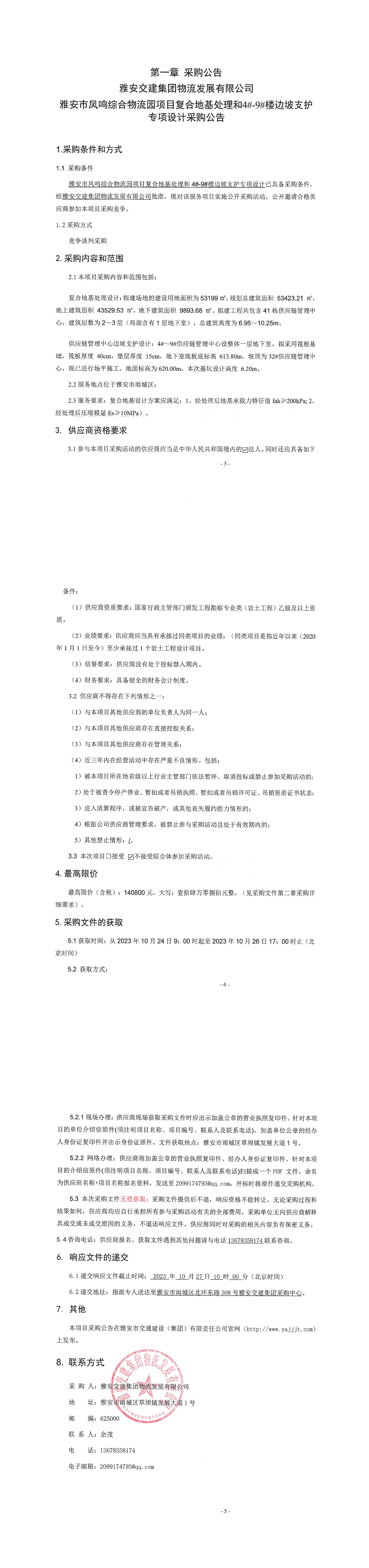 雅安交建集團(tuán)物流發(fā)展有限公司雅安市鳳鳴綜合物流園項目復(fù)合地基處理和4#-9#樓邊坡支護(hù)專項設(shè)計采購公告
