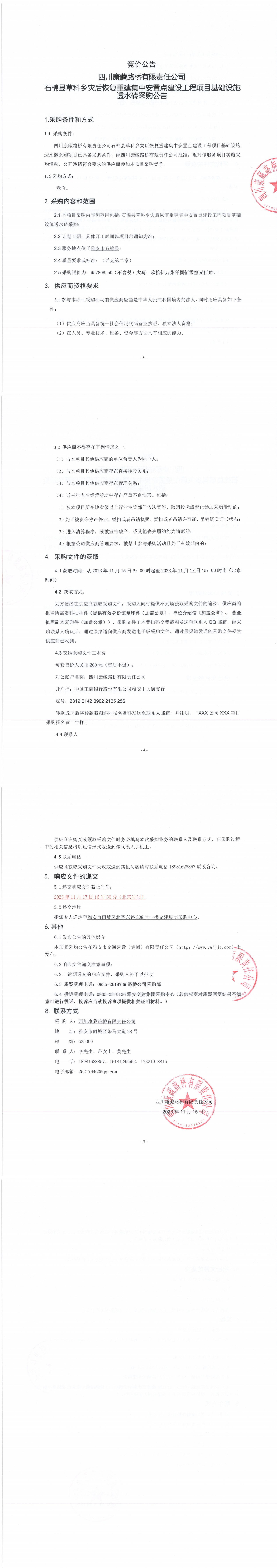 四川康藏路橋有限責任公司石棉縣X073兩河口至界碑石(甘孜界)災(zāi)后恢復(fù)重建工程項目路基路面輔助材料采購公告