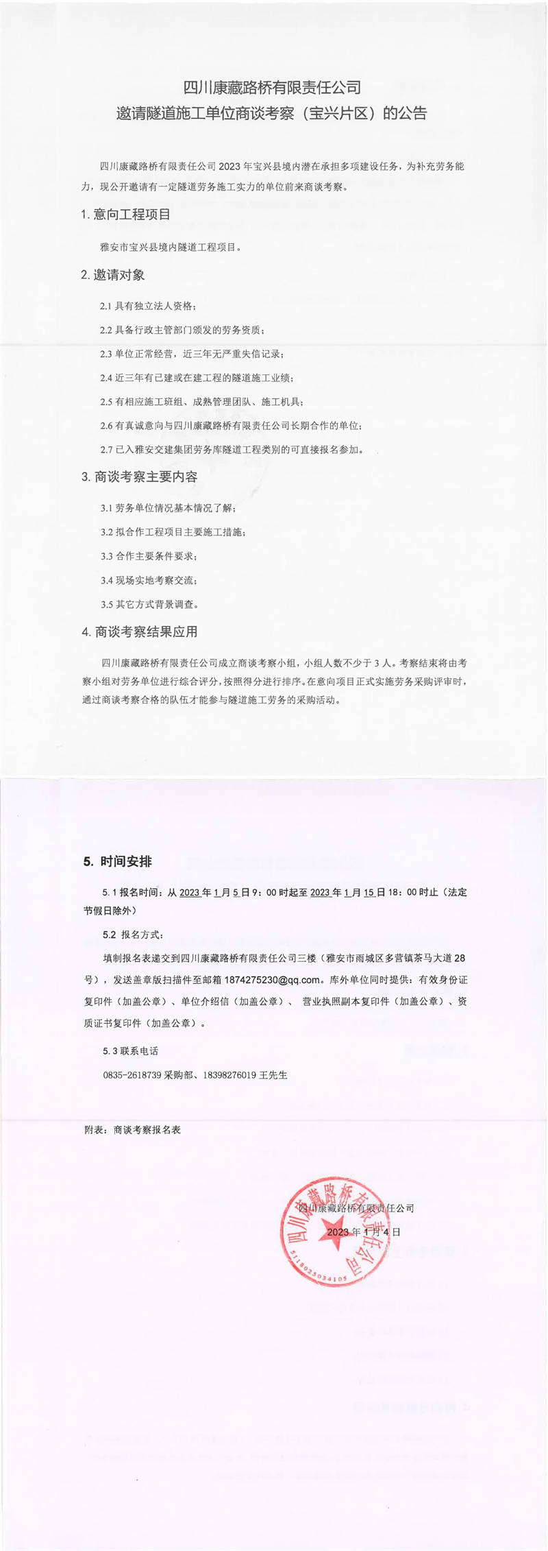 四川康藏路橋有限責任公司邀請隧道施工單位商談考察(寶興片區(qū))的公告