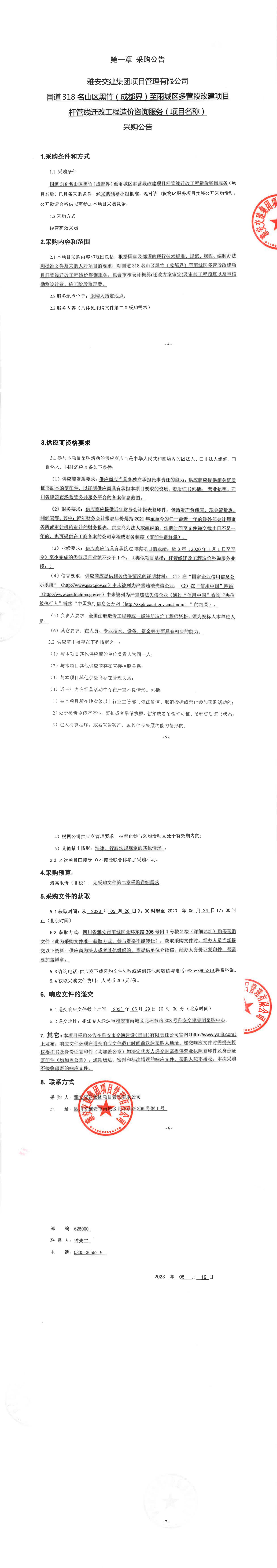 雅安交建集團(tuán)項(xiàng)目管理有限公司國(guó)道318名山區(qū)黑竹(成都界)至雨城區(qū)多營(yíng)段改建項(xiàng)目桿管線遷改工程造價(jià)咨詢服務(wù)(項(xiàng)目名稱)采購公告