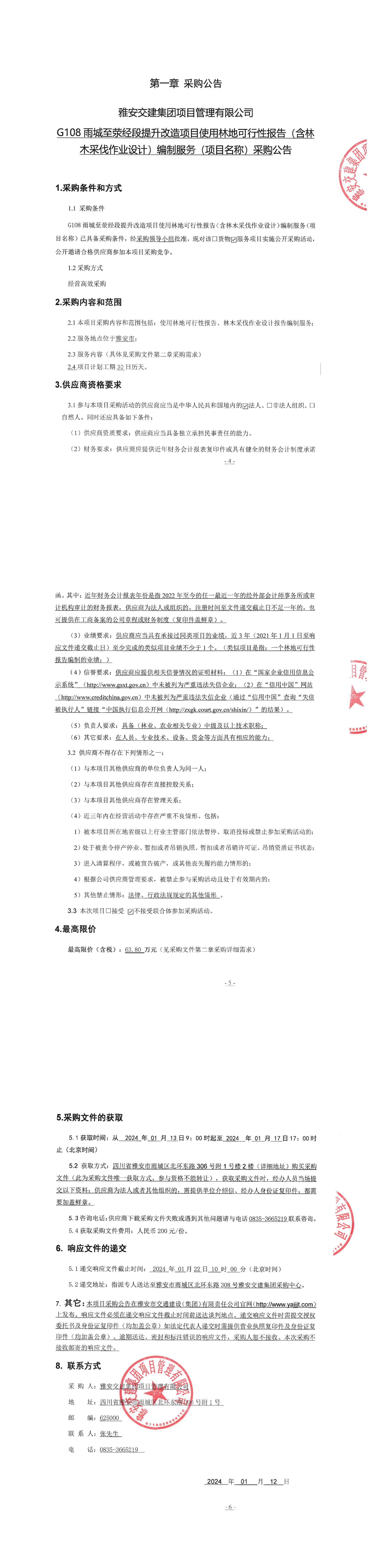 雅安交建集團項目管理有限公司G108雨城至滎經(jīng)段提升改造項目使用林地可行性報告(含林木采伐作業(yè)設(shè)計)編制服務(wù)(項目名稱)采購公告