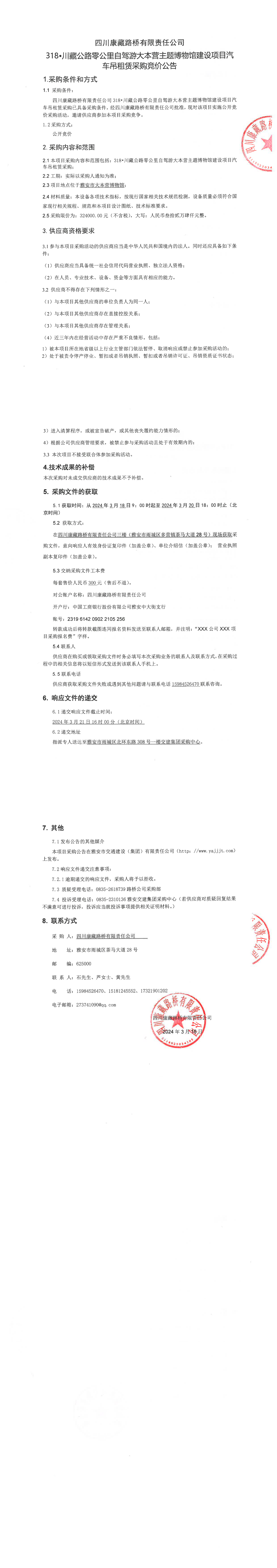 四川康藏路橋有限責任公司318•川藏公路零公里自駕游大本營主題博物館建設項目汽車吊租賃采購競價公告
