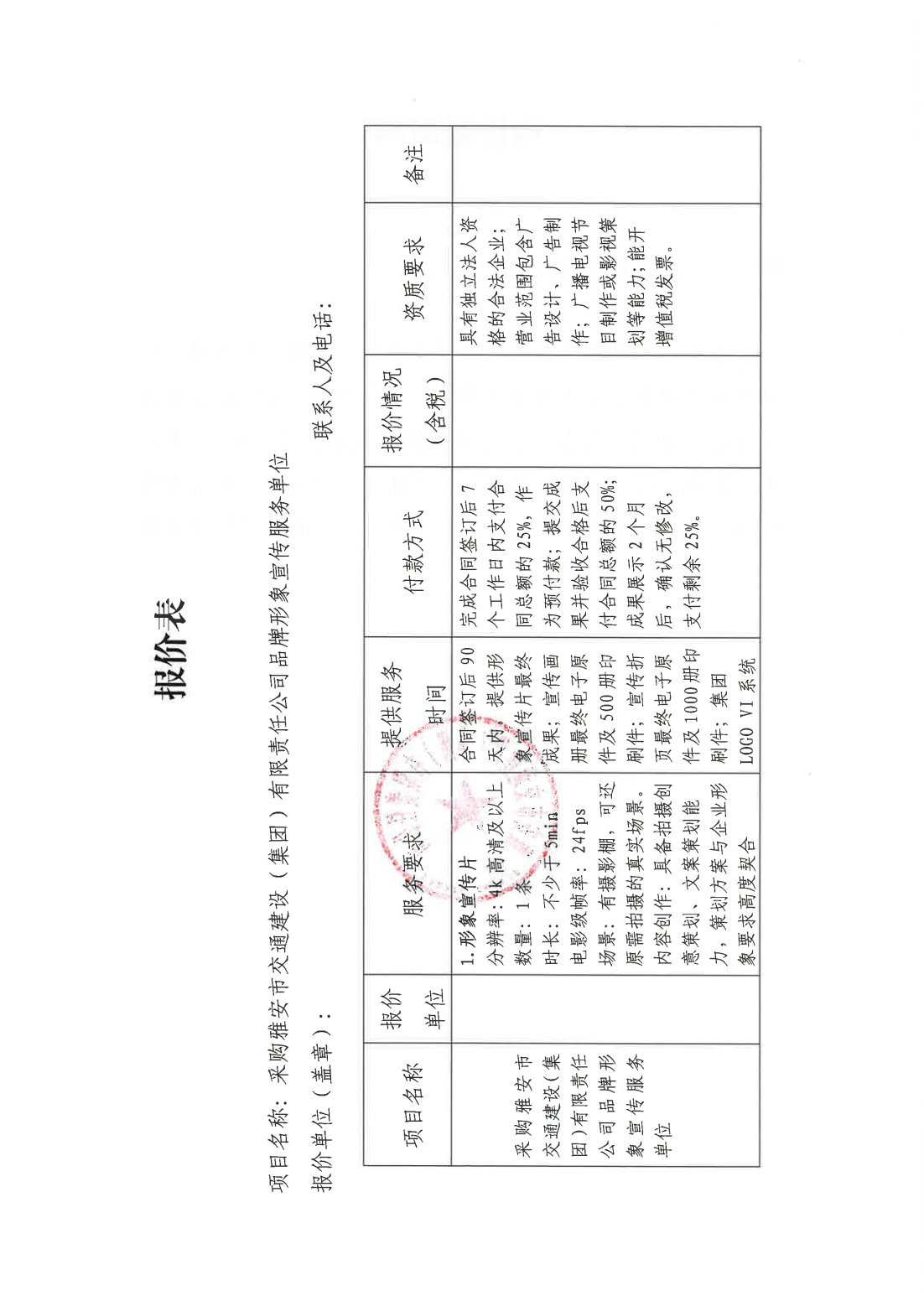 關(guān)于采購集團(tuán)品牌形象宣傳服務(wù)單位的詢價(jià)函