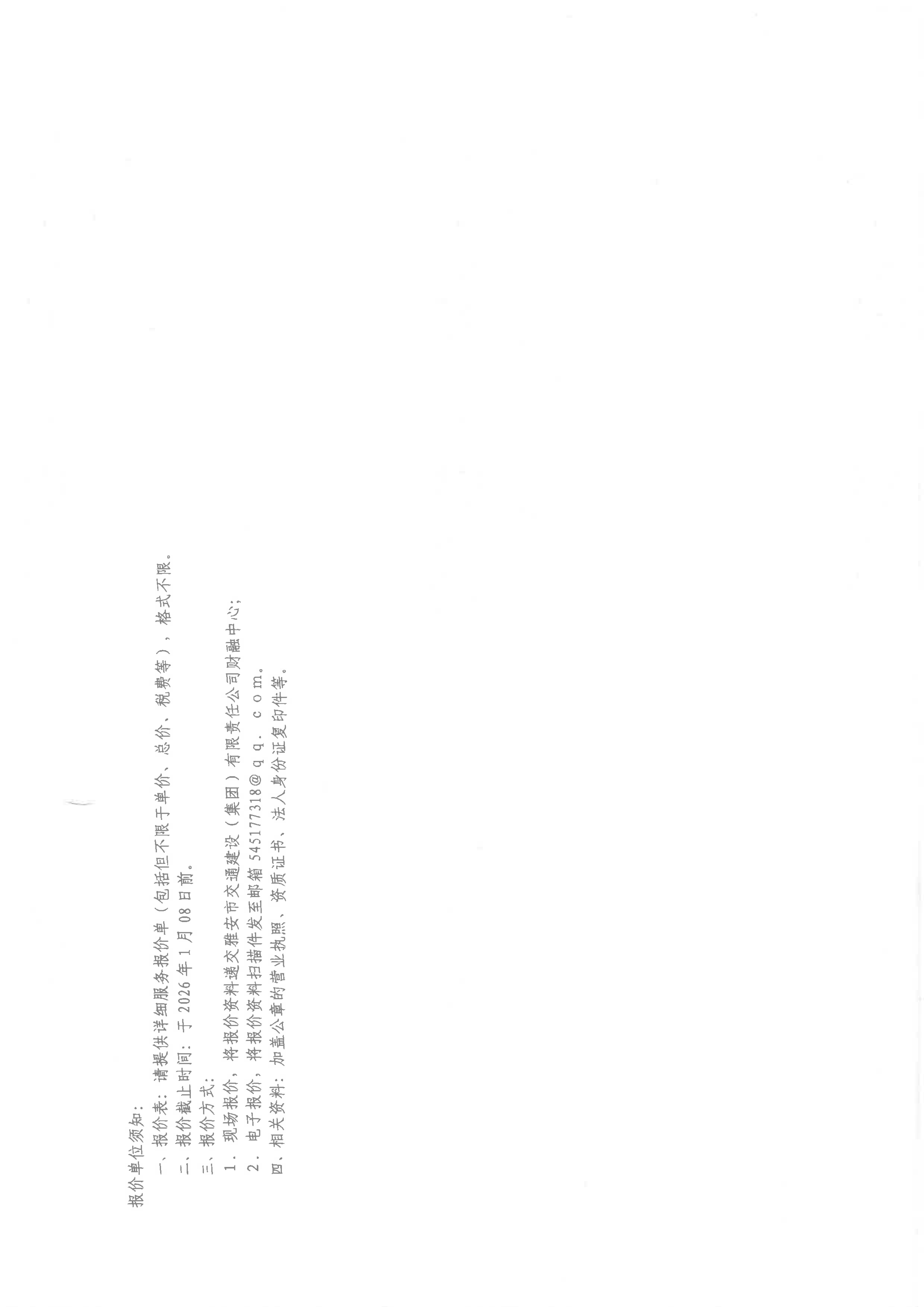關(guān)于采購雅安市交通建設(shè)(集團(tuán))有限責(zé)任公司主體信用評級2025年財務(wù)報表審計服務(wù)限價的詢價函