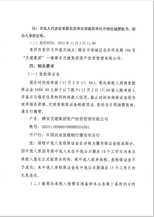雅安交建集團(tuán)資產(chǎn)經(jīng)營(yíng)管理有限公司 雨名快速通道(名山服務(wù)區(qū))3號(hào)樓商鋪招租公告