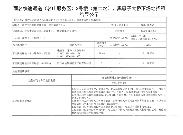 ÑŰ²½»½¨¼¯ˆF(tu¨¢n)½»Í¨ÙYÔ´é_(k¨¡i)°l(f¨¡)ÓÐÏÞØŸ(z¨¦)Èι«Ë¾ÓêÃû¿ìËÙͨµÀ£¨Ãûɽ·þ„Õ(w¨´)…^(q¨±)£©3Ì–(h¨¤o)˜Ç£¨µÚ¶þ´Î£©ºÚÄë×Ó´ó˜òψö(ch¨£ng)µØÕÐ×â½Y(ji¨¦)¹û¹«Ê¾