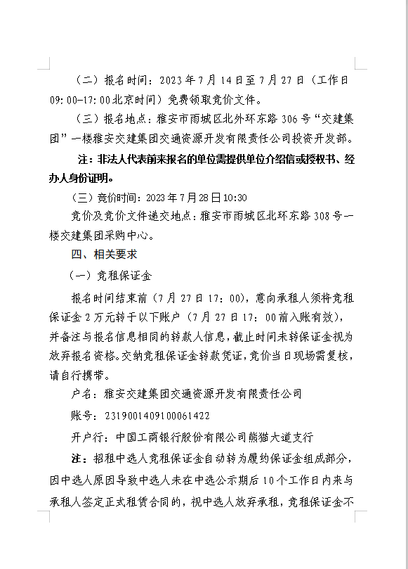 雅安交建集團(tuán)交通資源開發(fā)有限責(zé)任公司雨名快速通道名山服務(wù)區(qū)場地(游樂類項(xiàng)目)招租公告附件