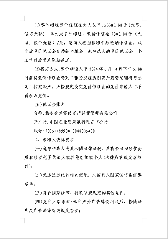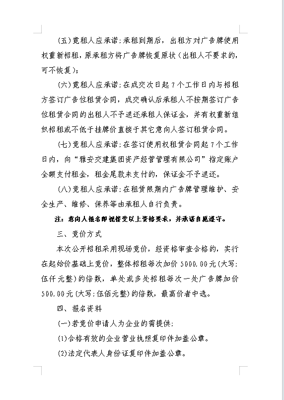 雅安交建集團(tuán)資產(chǎn)經(jīng)營管理有限公司關(guān)于戶外廣告位競價招租的公告附件