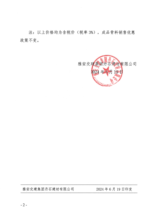 關(guān)于公示砂石成品骨料銷售價(jià)格的通知