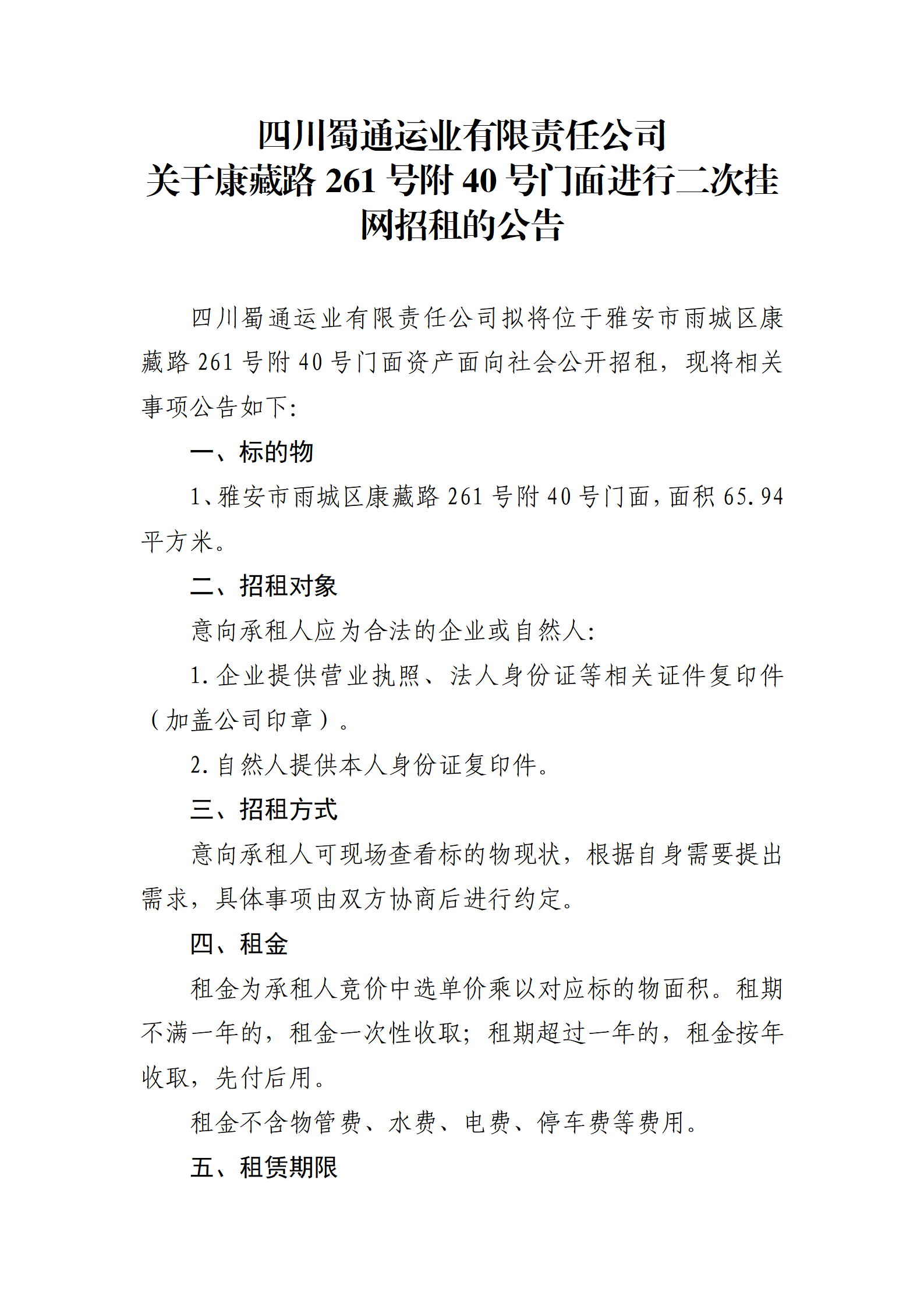ËÄ´¨Êñͨß\˜I(y¨¨)ÓÐÏÞØŸÈι«Ë¾ êPÓÚ¿µ²ØÂ·261Ì–¸½40Ì–éTÃæßMÐжþ´Î’ì¾W(w¨£ng)ÕÐ×âµÄ¹«¸æ
