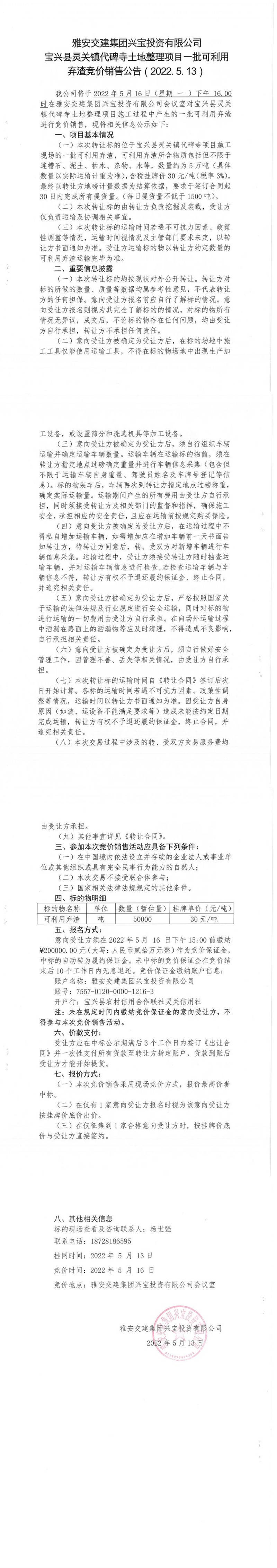 ÑŰ²½»½¨¼¯ˆF(tu¨¢n)ÅdŒšÍ¶ÙYÓÐÏÞ¹«Ë¾ŒšÅd¿hì`êP(gu¨¡n)æ‚(zh¨¨n)´ú±®ËÂÍÁµØÕûÀíí—(xi¨¤ng)ĿһÅú¿ÉÀûÓ׉Ôü¾¹ƒr(ji¨¤)äN(xi¨¡o)ÊÛ¹«¸æ£¨2022.5.13£©
