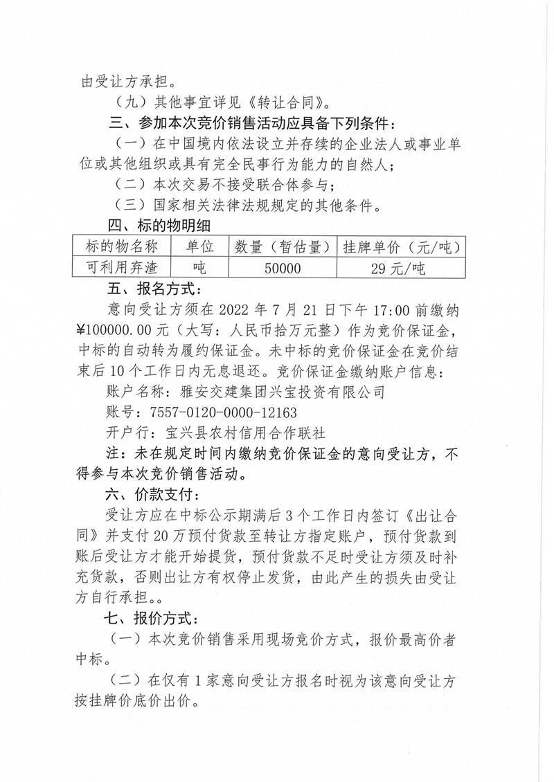 寶興縣靈關(guān)鎮(zhèn)代碑寺土地整理項目一批可利用棄渣競價銷售公告7.15(5萬噸)