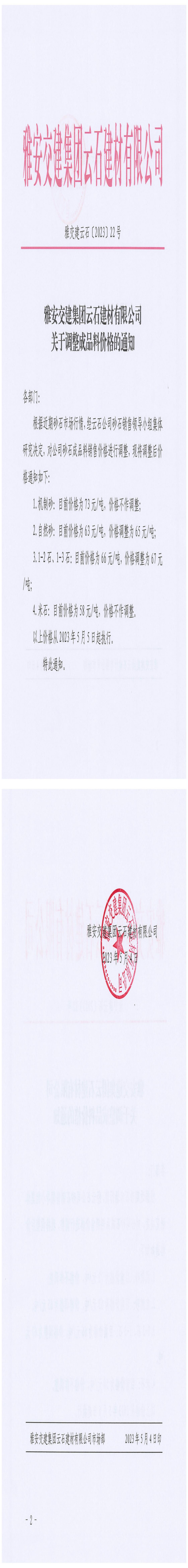 ÑŰ²½»½¨¼¯ˆF(tu¨¢n)ÔÆÊ¯½¨²ÄÓÐÏÞ¹«Ë¾³¬ÒŽ(gu¨©)¸ñʯÁϸ‚(j¨¬ng)ƒr(ji¨¤)äNÊÛ¹«¸æµÚ2´Î£¨2023.5.5£©